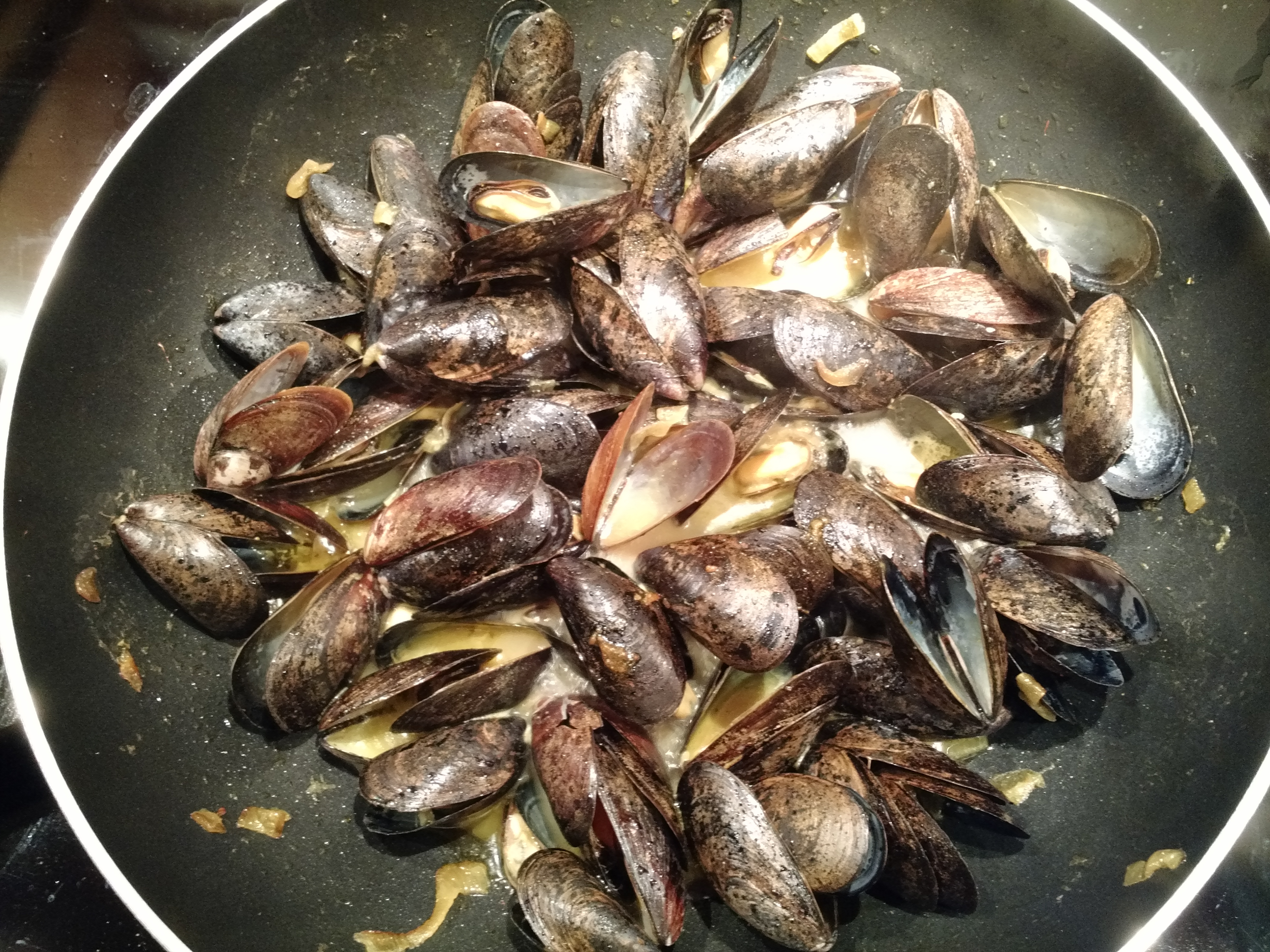Voilà!  Delicious curry mussels!